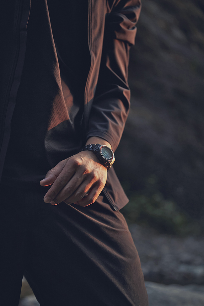 在城市与大自然中,住的是每个人对于生活的美好向往。能在生活中的闲暇时光里独自一人前往山野体会不一样的宁静。历经艰难之后攀上山顶享受日落余晖的惬意。卡西欧PRO TREK的FIREFALL系列PRW-30YT-1PR助你挑战山野享受惬意,回归本我生活。此期卡西欧PROTREK与艺术家pandamei联合产出极简户外造型look。以优胜美地独有firefall神奇景观为灵感,将户外生活与日落相结合,力求将生活回归本质。以强悍的户外专业性与优秀产品质感相结合,户外专业性上配备三重感应器,其中三重感应器集合罗盘功能、海拔高度、环境气压、温度测量等。另外PRW-30YT-1PR的太阳能动力让手表免去充电烦恼,并同时配备100m防水、六局电波等一系列强悍户外功能。同时PRW-30YT-1PR为表盘蓝宝石玻璃镜面与IP处理的钛合金表带、表圈以及背刻相呼应增加质感。把野性难驯的“熔岩瀑布”留在腕间,以全新造型开启探索之旅。