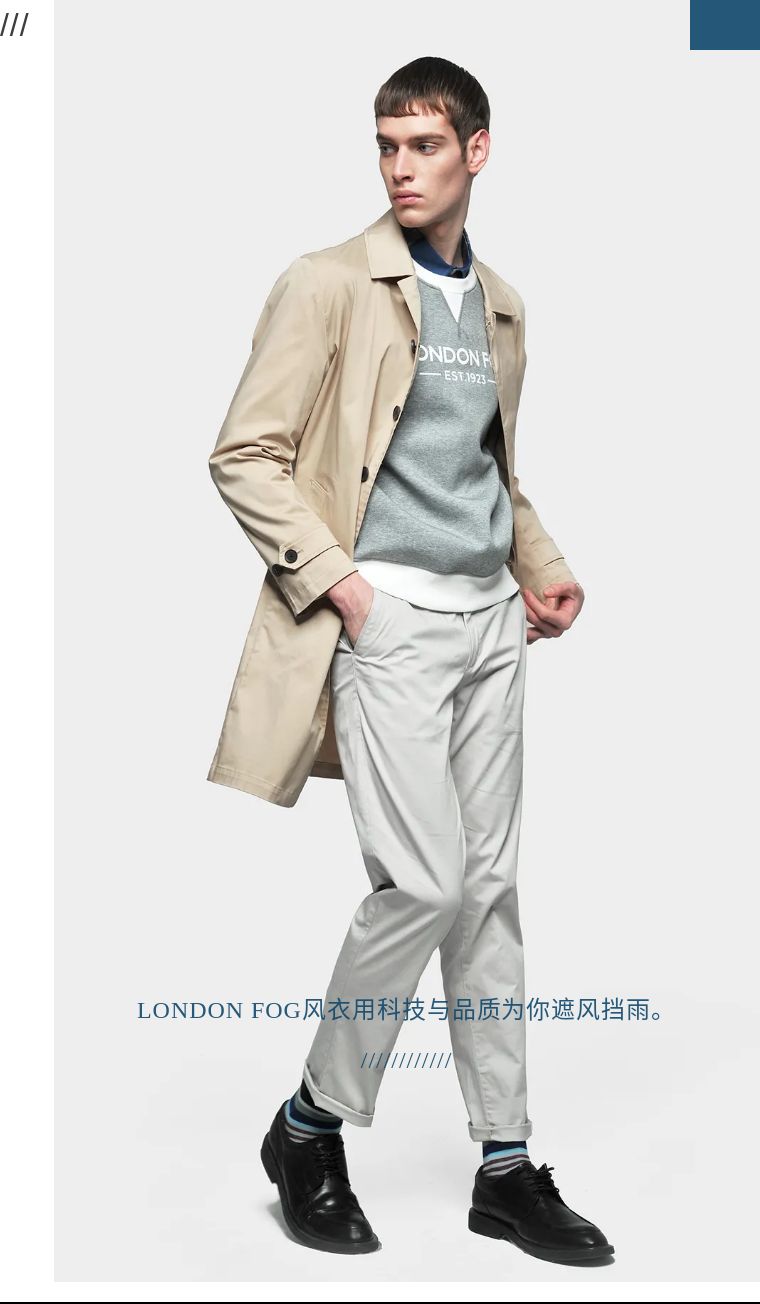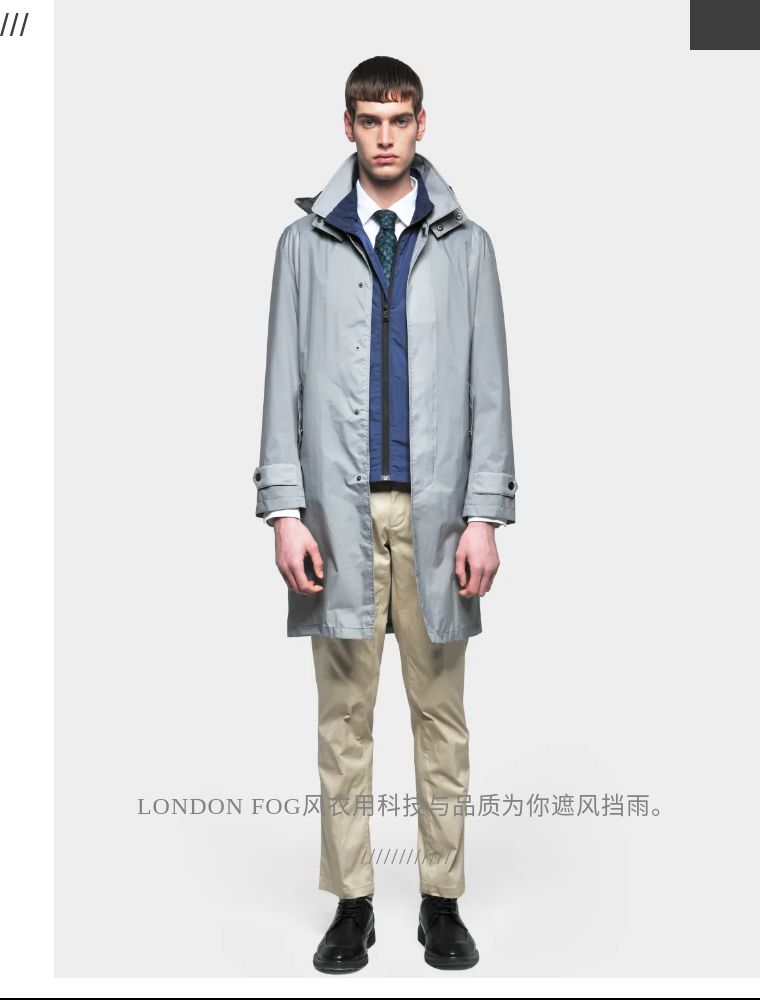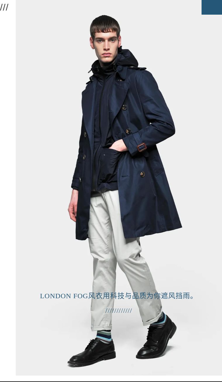 提到风衣大家都会想到Burberry、Aquascutum、Barbour这些品牌, 也有人知道LONDON FOG风衣品牌, 是美国拥有百年历史的风衣品牌, 是历届总统必备单品, 它有品质感的风衣总不断融合科技创新, 适时迎合时尚的演化, 无论气候如何变化, 都是你身体的呵护者, 是都市白领的必备时尚单品。