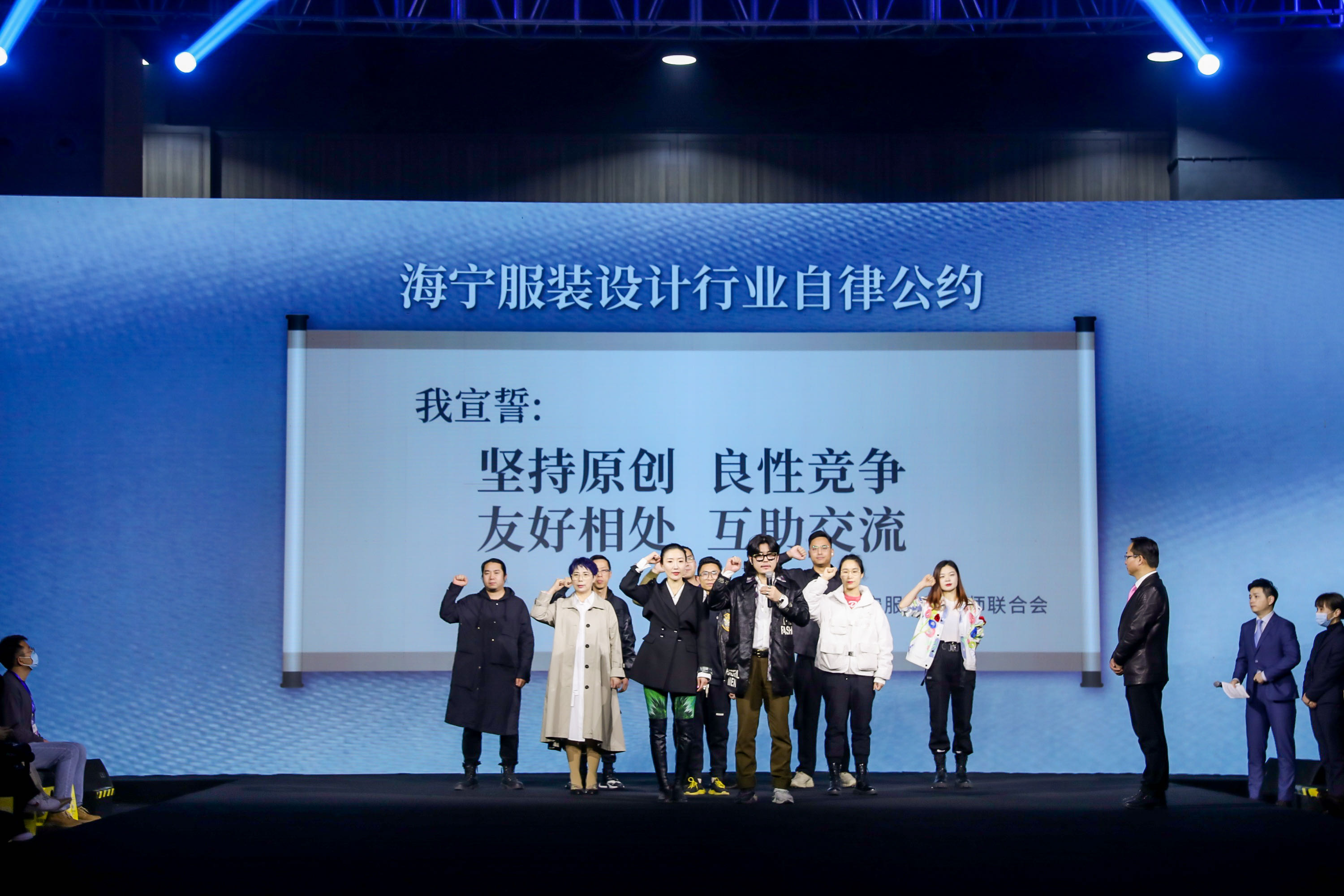 我宣誓:“坚持原创、良性竞争、友好相处、互助交流。”3月25日,2021海宁中国原创设计周启动仪式上,在中国皮革协会副理事长、海宁中国皮革城股份有限公司董事长张月明的监督下,海宁服装设计师联合会会长史宏伟及秘书长任敏、副会长吴偲偲、李向卫、卢薪羽、胡少彬,设计师谭金涛、吴晓燕、刘颖晓静、周秀蓉10位代表设计师郑重宣誓。这是全海宁设计力量规模空前的一次集体发声,是海宁多年来践行原创见证,更是推动海宁原创设计迈向新时代的里程碑。