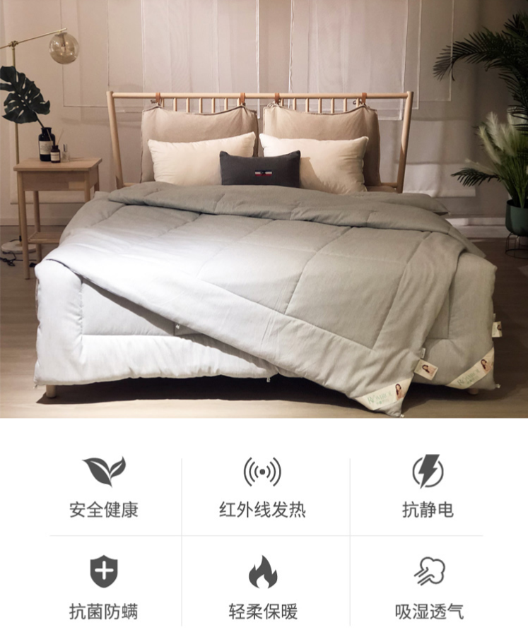 新推出的“石墨烯子母被”融入核心科技,石墨烯红外发热,感应人体波长,让温暖整晚持续。同时升温速度提升30%,身体羽被子不断进行热循环,这个寒冬让温暖不间断。