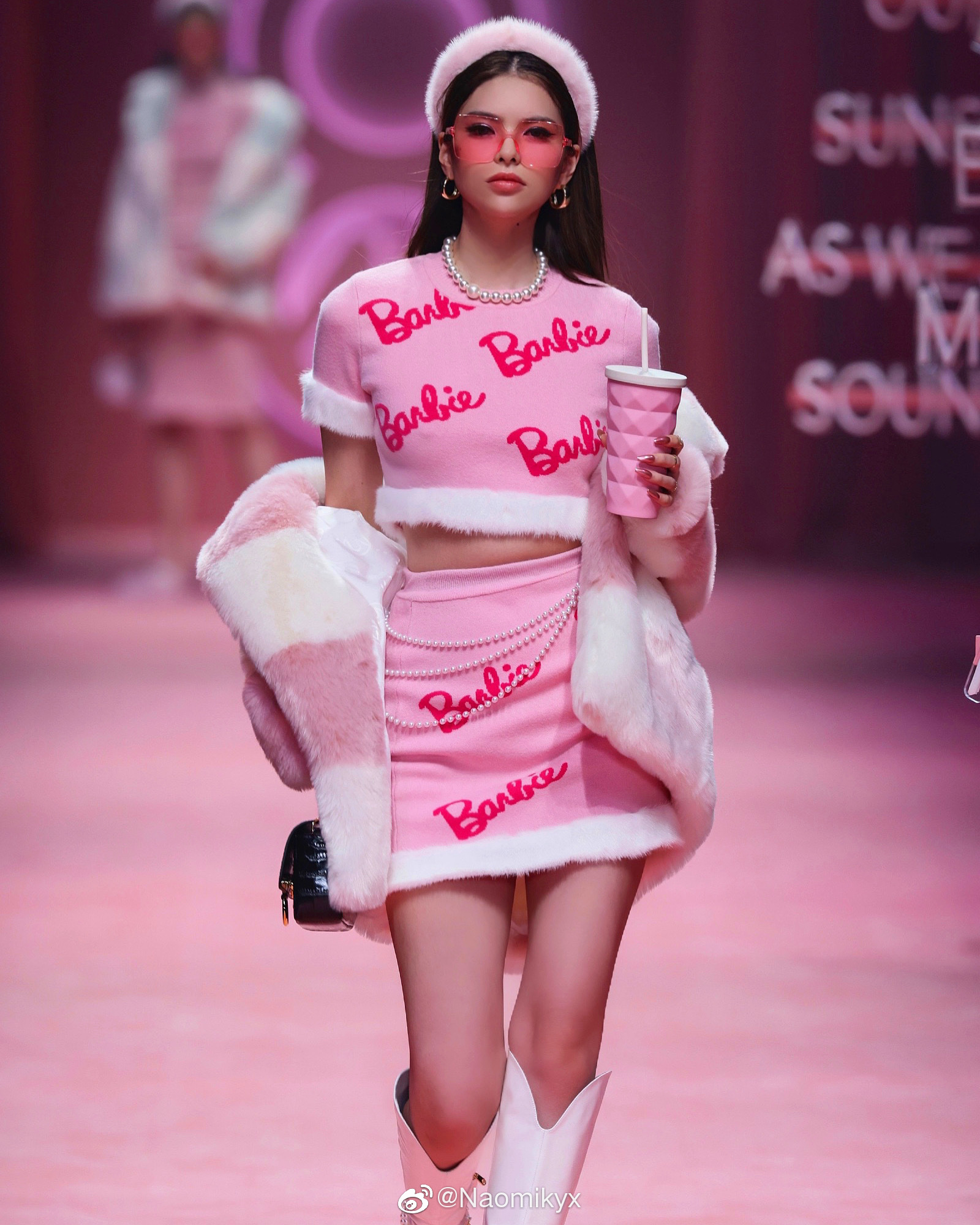 其实早在2021上海时装周的秀场上,OZLANA x Barbie联名合作系列便被“天使超模”Naomi在大秀开场中上身演绎。