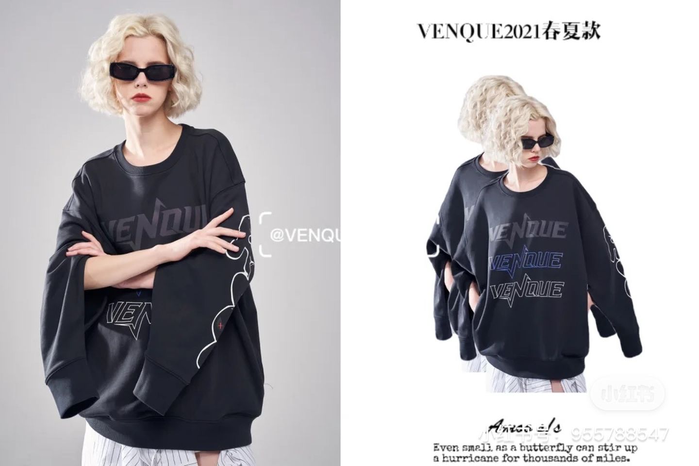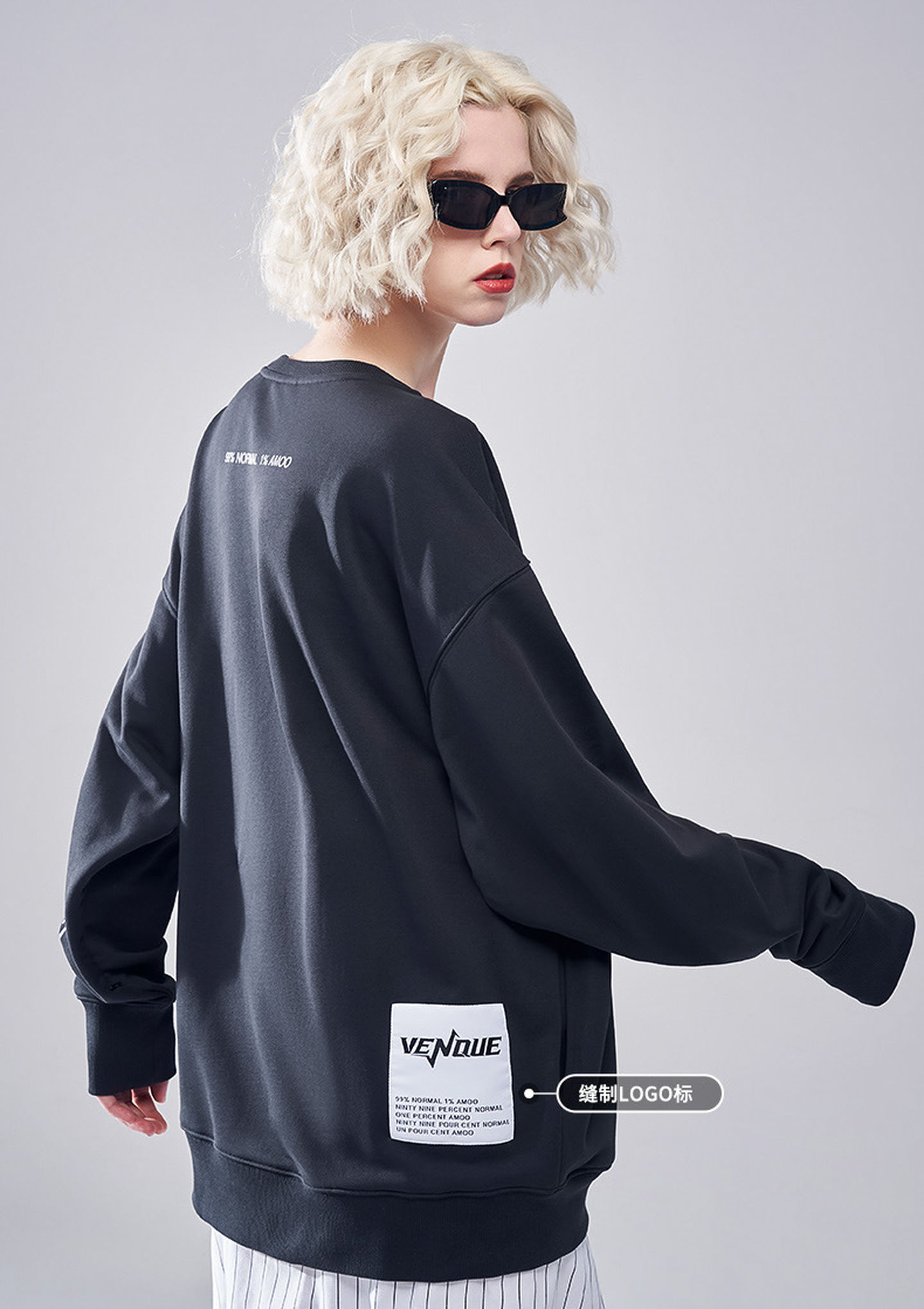 并不突兀地诠释了VENQUE 2021圆领卫衣的设计理念。在99%的普通洪流中,寻找到1%属于自己的特立独行。