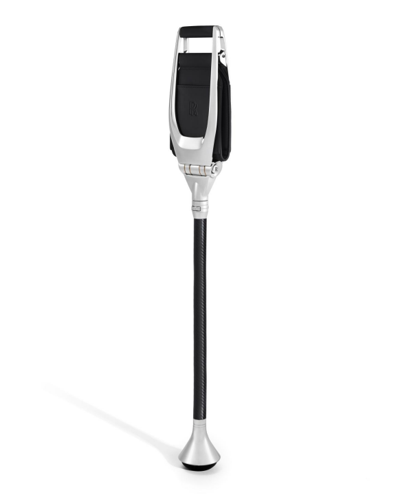 该户外便携座椅采用了碳纤维和抛光铝等当代匠造材质,配有带劳斯莱斯“双R”标志的手电筒。